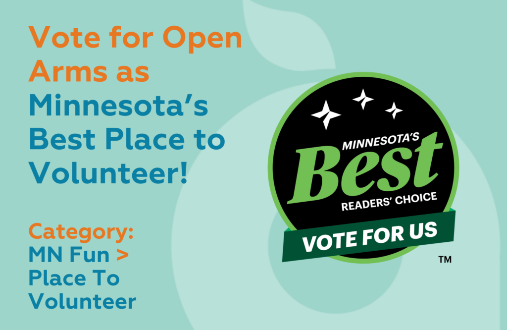 We need your support! Open Arms of Minnesota has been nominated in the MN Fun > Place To Volunteer category in Minnesota’s Best annual best-of contest—and we’d love your vote!